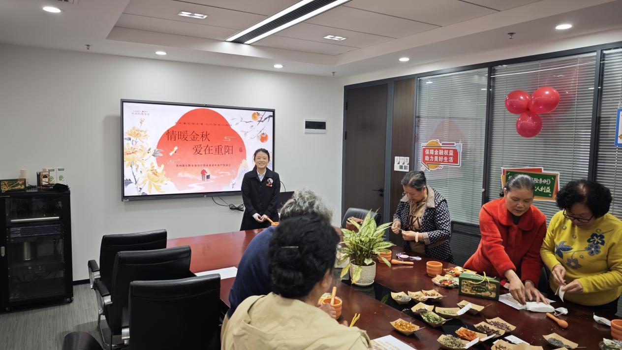 金秋送爽,丹桂飘香。为弘扬中华民族尊老、敬老、爱老、助老的传统美德,切实守护老年群体财产安全,贵州银行黔东南分行营业部于重阳节前夕举办“情暖金秋爱在重阳”主题活动,老年客户参与其中,在传统文化浸润与金融知识科普中共度佳节。